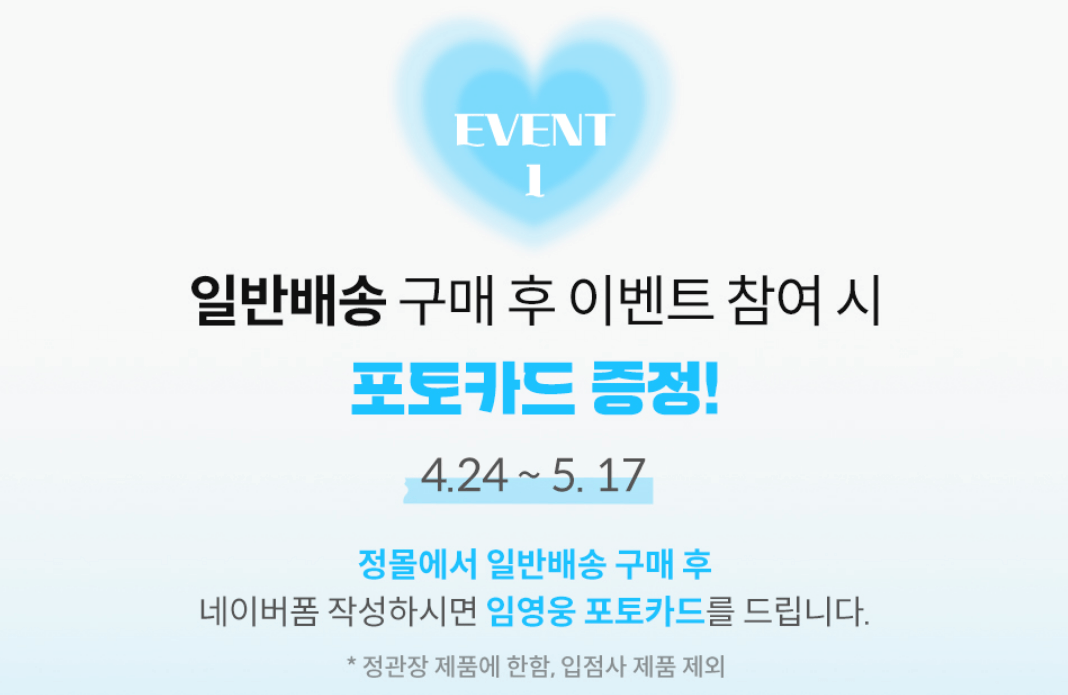 👉 일반배송 시, 임영웅 포토카드가 경품으로 지급됩니다.