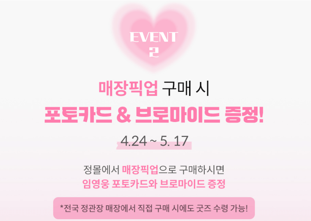 👉 매장픽업 시, 임영웅 포토카드와 브로마이드가 경품으로 지급됩니다.