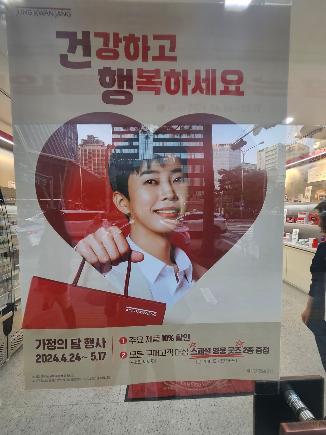 정몰에서 정관장 "매장픽업" 제품 구매 후 회사 근처 방문가능한 정관정대리점을 선택했습니다. 이벤트 초기라 물량은 넉넉해 보였으나 곧 어버이날이라 일부 매장에서 물량이 부족할 듯하여 서둘러 구매했습니다. 참고로 브로마이드안에 포토카드가 같이 동봉되어 있습니다.